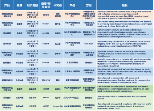 在头颈肿瘤领域,卡瑞利珠单抗、阿帕替尼、法米替尼、SHR1701等药物的单药或联合方案研究入选1篇壁报讨论、7项壁报,3项线上发表。