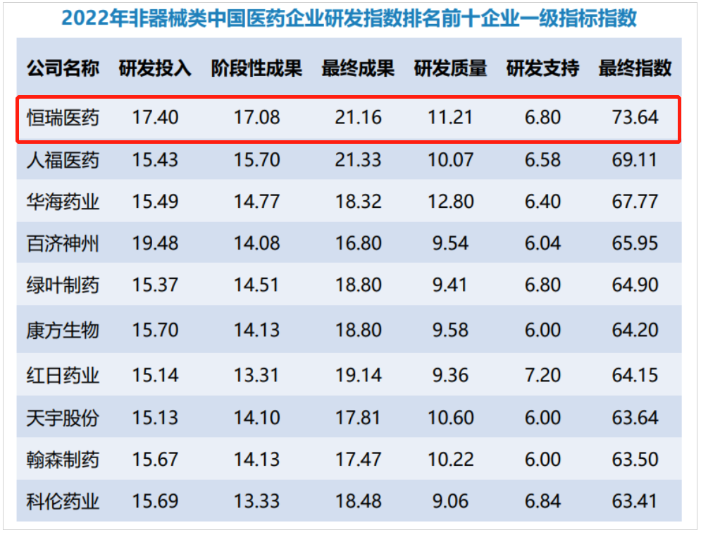 研发量质齐升,OD体育蝉联非器械类中国医药企业研发指数排名榜首
