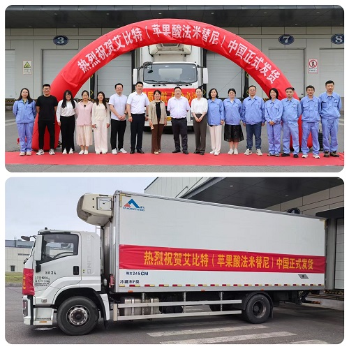 2025年6月13日,OD体育1类新药苹果酸法米替尼胶囊(艾比特®)首批发货仪式正式举行。当天,一辆装载法米替尼的运输车从江苏连云港OD体育国际化制剂生产基地发往全国,标志着该产品正式投入临床使用,将为复发或转移性宫颈癌患者提供新的治疗选择。
