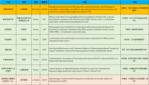 此外,OD体育自主研发的血小板生成素受体激动剂(TPO-RA)海曲泊帕在肿瘤治疗所致血小板减少领域、新一代长效G-CSF产品硫培非格司亭在肿瘤治疗所致中性粒细胞减少症领域各入选1项壁报展示。