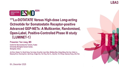 [2]177Lu-DOTATATE versus high-dose long-acting octreotide for somatostatin receptor-positive advanced GEP-NETs: A multicenter, randomised, open-label, positive-controlled phase III study. 2025 ESMO Asia.LBA3.